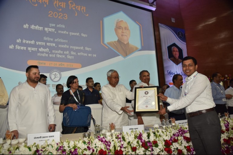 बक्सर टॉप न्यूज़, बक्सर : अपने पदस्थापन के बाद से ही जिले के खेतों की पगडंडियों से लेकर बाबूओं के कार्यालयों तक का औचक निरीक्षण कर विभिन्न विभागों में हड़कंप मचाने तथा एक सप्ताह के अंदर लापरवाह दर्जनों अधिकारियों एवं कर्मचारियों का वेतन बंद करने से लेकर ऑन द स्पॉट शो कॉज करने वाले जिला पदाधिकारी अंशुल अग्रवाल की सराहना सर्वत्र हो रही है. इसी बीच सूबे के मुख्यमंत्री नीतीश कुमार के द्वारा सिविल सेवा दिवस-2023 के अवसर पर मुख्यमंत्री सात निश्चय योजना के क्रियान्वयन में उत्कृष्ट उपलब्धि के लिए बक्सर जिला को राज्य में द्वितीय पुरस्कार दिया गया. जिला पदाधिकारी अंशुल अग्रवाल ने आज पटना के अधिवेशन भवन में पुरस्कार ग्रहण किया.